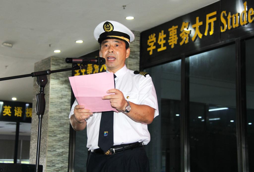 航海工程学院2017级航海技术1区队施挺同学代表老生发言。他鼓励学弟学妹们勇于探索尝试、勇于成为主人、学会承担责任、更要坚守本心,努力学习,在海运度过人生中最美好的大学时光。