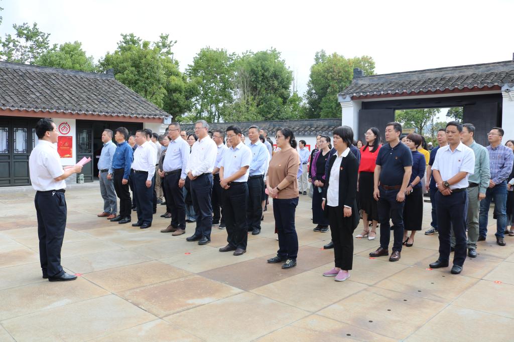 在古朴的院落里,领导干部们在宣誓墙前郑重地举起右手,在校党委委员、组织部(人事处)部长(处长)方晓红的带领下重温入党誓词,进一步强化党员初心、使命意识。