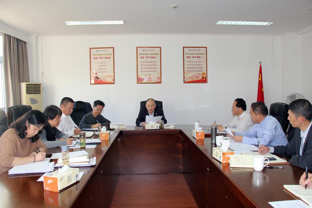 11月15日下午,我校在行政楼309会议室召开党委会,专题传达学习贯彻全省高校主题教育暨党的建设和思想政治工作推进会精神。会上,陈松华书记介绍了推进会情况,重点传达了省委常委、组织部部长黄建发和省教育厅厅长陈根芳等领导讲话精神,与会人员进行了认真学习。结合正在深入开展的“不忘初心、牢记使命”主题教育、学习贯彻党的十九届四中全会精神,会议对我校贯彻落实全省高校党的建设和思想政治工作座谈会精神进行了部署,要求与会人员根据学校实际,按照“四个始终”要求,切实做好主题教育工作,加强党的建设,加强思想政治工作,按照中央、省市要求,履行为党育人、为国育才的重要使命,坚持立德树人根本任务,努力培养德智体美劳全面发展的社会主义建设者和接班人。(图文/宣传部)
