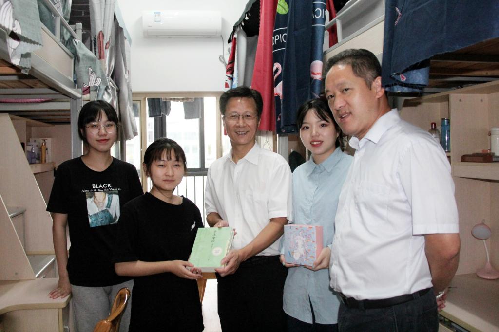 下午4点半,吴中平、曹志斌和校团委、二级学院相关领导一同前往宿舍慰问学生。吴中平一行仔细查看了寝室的基础设施、环境卫生、消防安全情况,深入各二级学院寝室与学生进行了亲切交流。吴中平详细询问了同学们的生活、学习情况,叮嘱同学们国庆假期记得给家人报平安,如果在学习和生活上遇到了困难要及时向学校和老师反馈,学校会尽最大的努力帮助大家解决困难。他还向同学们送上月饼和精心挑选的书籍,并表达了节日问候和深切关怀。吴中平校长赠送的书籍《乡土中国》是一部饱含家国情怀的经典力作,希望海运学子通过阅读这本《乡土中国》,对祖国有更深厚的感知,对自己肩头的责任有更深刻的感悟。