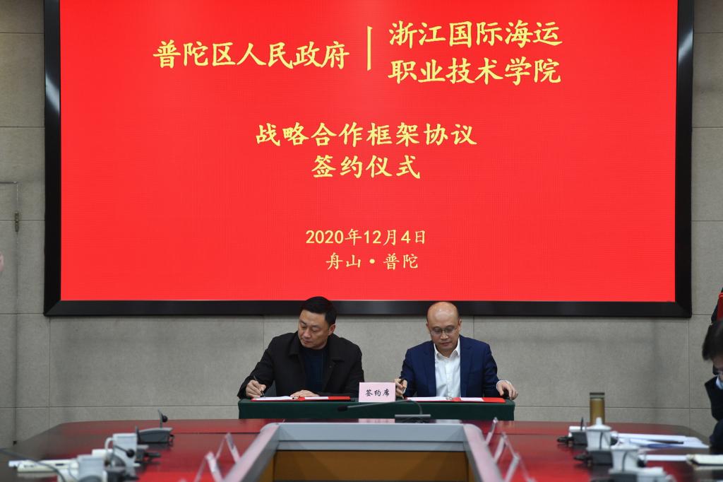 苏为泽书记在发言中表示,近几年,普陀区各项新兴产业都得到很大的发展,为普陀区取得的成绩感到高兴。学校在支持普陀创新发展方面也是硕果累累:一是学校和普陀区合作频繁,积极与普陀区合作开发科研项目,共建实训基地实训室,开展学历教育和社会培训教育工作,都取得了良好成效。二是学校的专业设置和普陀区产业发展紧紧相连。我校毕业生的留舟率达为35%,其中很多学生留在了普陀区,成为普陀区发展的中坚力量;学校新增专业也可直接服务普陀区的新兴产业建设。三是未来有很大的合作前景,可以开展船舶、航海、石化、电商等方面的培训,并可以在普陀区建设我校的实习实训基地。四是学校教师的科研力量可以为普陀打造海洋产业新高地做贡献。