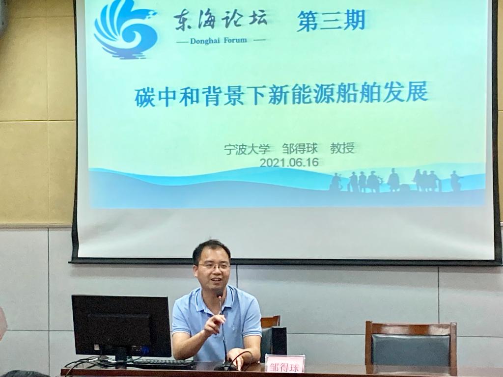 学校成功举行“东海论坛”第三期学术讲座“碳中和背景下新能源船舶发展”