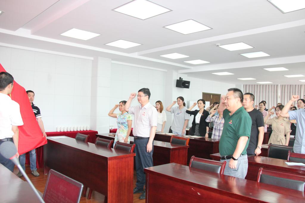 1日下午,在党委书记苏为泽的带领下,党员们面向鲜红的党旗,重温入党誓词,感受入党宣誓时的庄严承诺和坚定决心,牢记共产党员的政治责任和历史使命,接受心灵的净化和洗礼。
