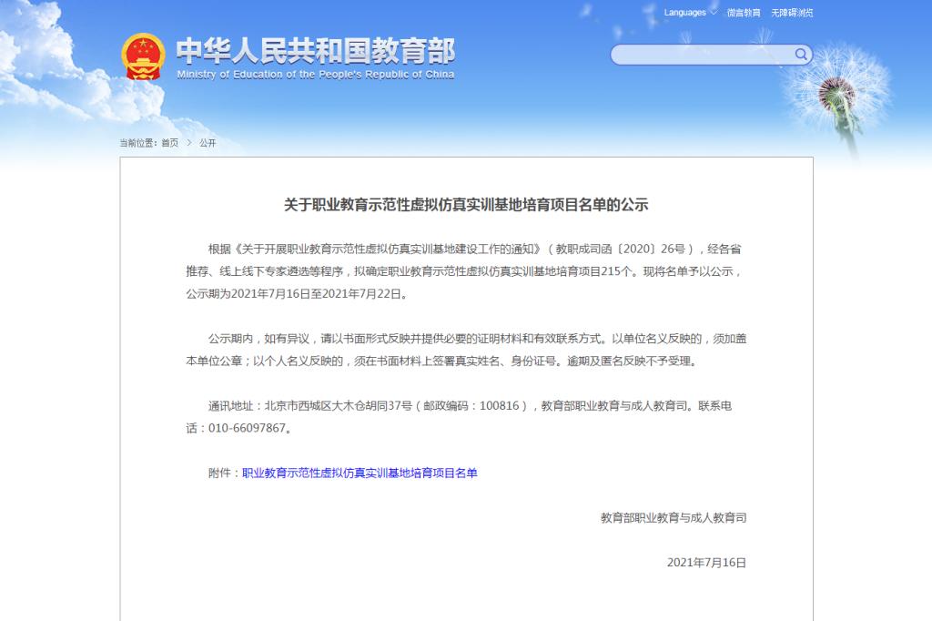 我校成功获批国家级职业教育示范性虚拟仿真实训基地培育项目