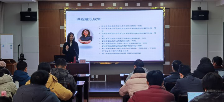 开班仪式后,浙江纺织服装职业技术学院机电与轨道交通学院院长叶宏武教授作了《教学能力大赛获奖之路》主题讲座,围绕“教师教学能力比什么、怎么评、怎么写、怎么展、怎么拍”五个方面,结合国赛案例,深入剖析了教学能力比赛的重点和难点。叶宏武教授指出,比赛重点考察教学团队针对某课程的教学内容设计、课堂教学实施、评价目标达成、教学反思改进的能力;要反复仔细打磨实施报告中的教学整体设计、实施过程、学生学习效果和反思改进措施;要对标先进、弯道超车,才能把有意义的课,上得有意思。