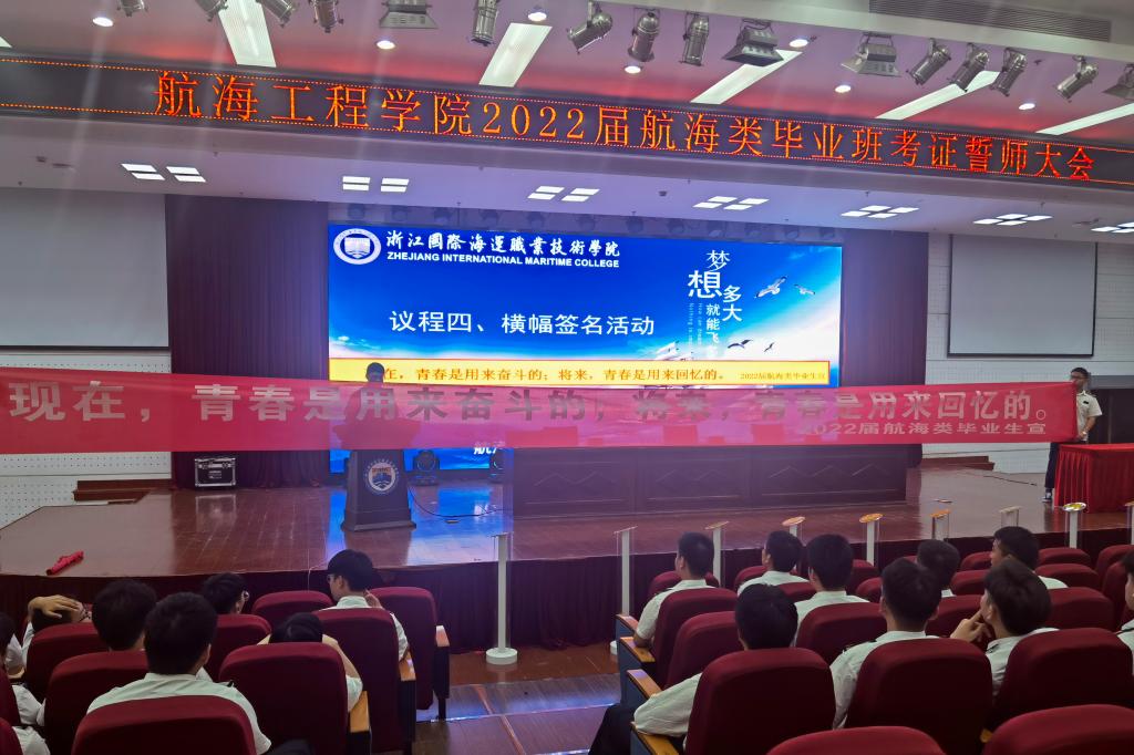 自2021年3月份起,航海工程学院着手谋划提高2022届航海类学生考证通过率,通过召开考证动员大会、考证誓师大会、考前动员会,举办“船长领航计划——对话航海人”等系列活动,鼓舞激励学生认真考证。
