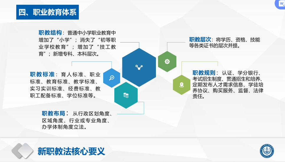 江苏海事职业技术学院黄锦鹏处长为我们以《目标•标准 类型•层次 结构•效益 守正•创新 以贯彻落实职业教育法来共同构想我们的未来》为主题,从职业教育溯源、新职教法核心要义、新职教法内涵及关键词、落实新职教法的思考等方面分享了江苏海事职业技术学院的具体实践和特色做法。