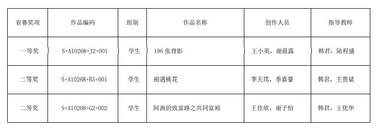 在2022年8月举办的第十届全国高校数字艺术设计大赛浙江赛区评比中,由我校港口管理学院学生王小英和谢晨露创作,韩君、陆程盛老师指导的作品《196张背影》荣获浙江赛区一等奖;选送参赛的另外2件作品荣获省赛二等奖。这也是该比赛列为《全国普通高校学科竞赛排行榜》竞赛项目后,我校取得的最好成绩。