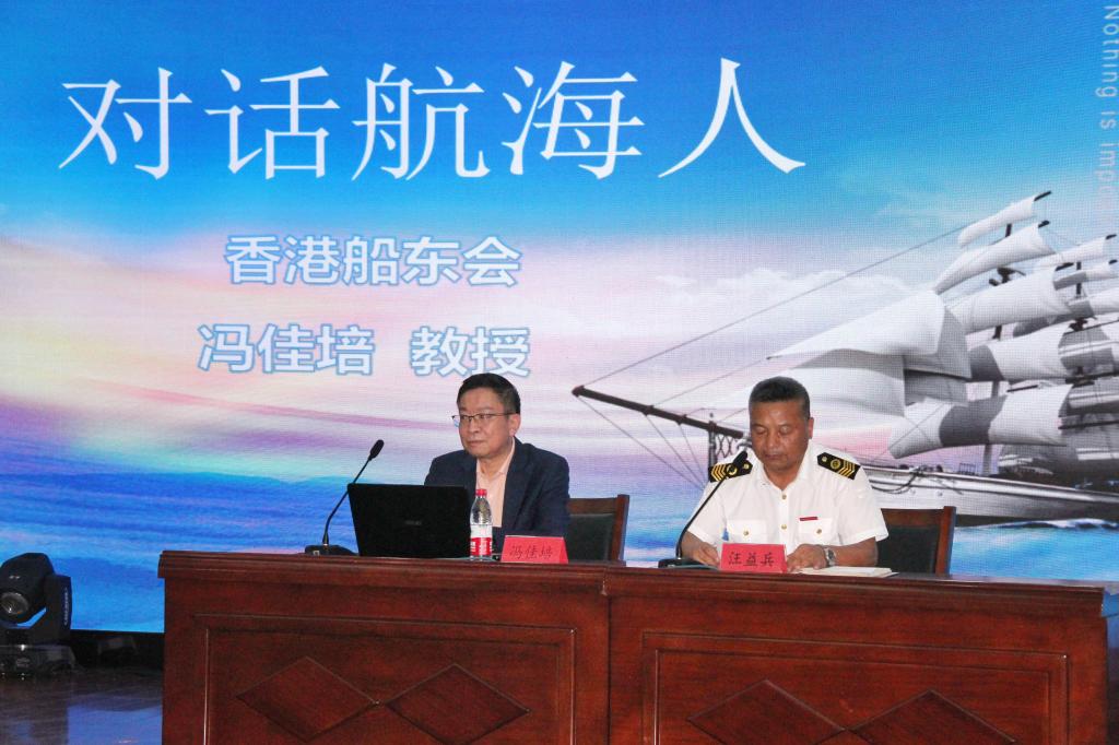 会后,冯佳培先生应邀在图书馆四楼报告厅为航海工程学院师生做了题为《香港航运业界介绍及在航海教育、海事文化方面的努力和探索》的主题讲座。冯佳培先生主要从香港航运业发展史、香港航运优势和政府措施进行了介绍,对当前航运面临的挑战、疫情期间船员换班等方面进行了分析,同时对学生们提出殷切期望,希望学生们能够积极投身航海事业,为建设海洋强国贡献自己的力量。