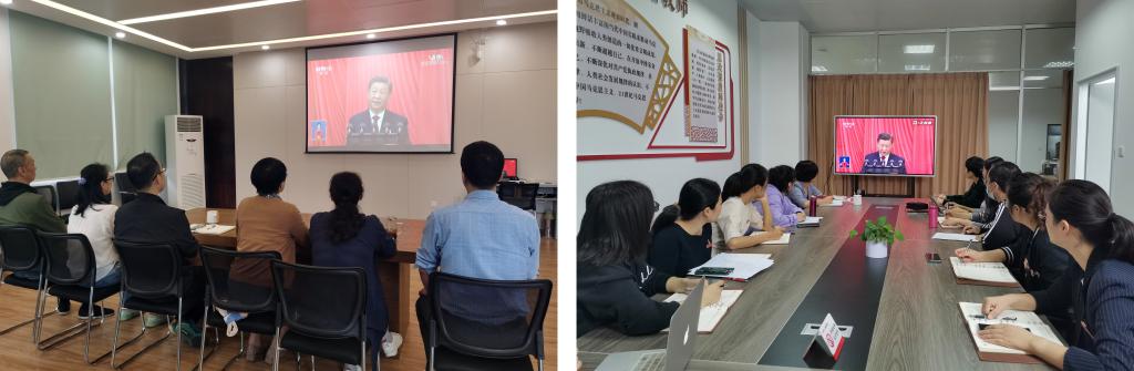 10月16日上午,举世瞩目的中国共产党第二十次全国代表大会在北京隆重召开。当天上午十时整,我校师生满怀激动和欣喜,通过电脑、手机、大屏幕等积极收听收看开幕会实况,认真学习聆听习近平总书记所作的大会报告。全校设行政楼401会议室为直播主会场,以各党总支或直属党支部为单位设分会场,组织师生集中观看。