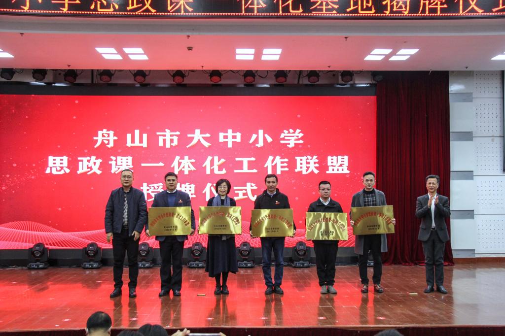 中共舟山市委宣传部副部长章隽达和我校党委书记苏为泽共同为舟山市大中小学思政课一体化基地揭牌。该基地设在我校,旨在以高校的“大手”拉住中小学的“小手”,努力推进大中小学思政教育理念一体化、队伍建设一体化、研修备课一体化、考核评价一体化。这也是我校落实省委教育工委、省教育厅11月23日印发的《关于推进大中小学思政课一体化建设的实施意见》的实际行动。