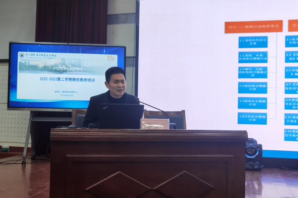 最后,李丽副校长结合学校实际对2022年教学工作进行了回顾、2023年教学工作进行了展望,用坚守、担当、尽责、坚持、风采、成长、聚焦、开拓、温暖、一张项目清单等10个关键词点赞了2022年疫情高峰期航海学生考证培训、防疫组考、全力以赴完成全年教学工作、职业技能竞赛、教师教学能力竞赛、“三航教师培训计划”、专业评价、有效课堂实施、国际化办学、学生毕业典礼等工作;用内涵、合作(融合)、开放、标准、示范(引领)等5个关键词对专业(群)建设内涵发展、产教深度融合、对标国内省内专业龙头、围绕专业等一系列标准、提质培优,改革创新等工作进行了展望,并勉励各位老师牢记教书育人任务,让情怀落地,让美好发生。