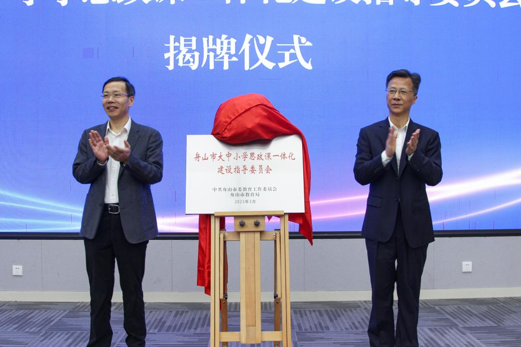 4月26日,在舟山市大中小学思政课一体化建设指导委员会揭牌仪式上, 全市43所大中小学负责人、首批16名思政智库专家和思政教师代表,齐聚一堂,共同重温习近平总书记在中国人民大学考察调研时的讲话精神,共同解读《舟山市大中小学思政课一体化建设行动方案》,落实“大手拉小手”大中小学思政课一体化方案,推出“大岛帮小岛”校地合作协议书,着力打造思政课一体化的海岛样本。