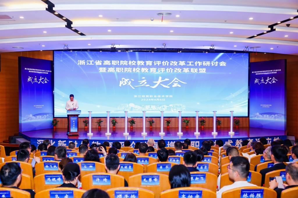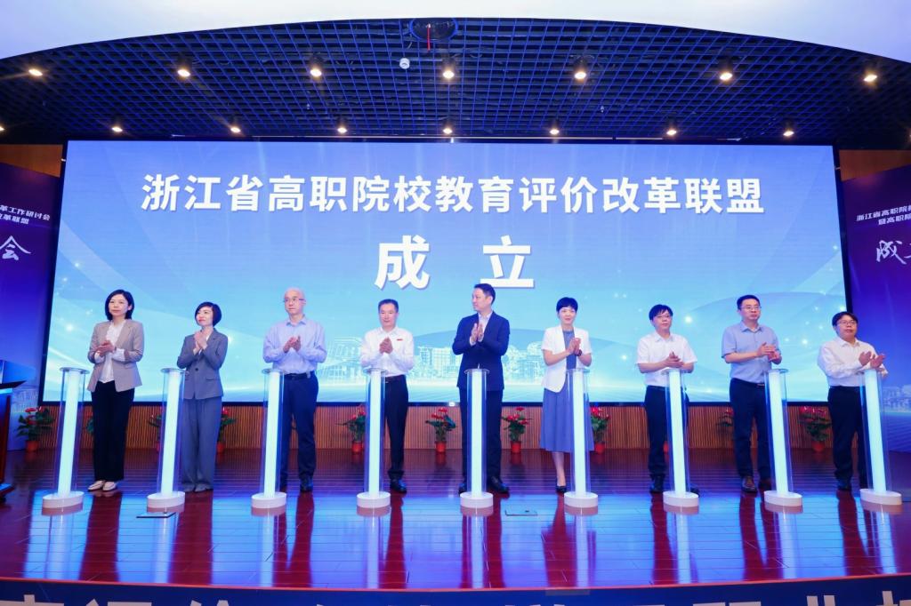会上,举行了浙江省高职院校教育评价改革联盟成立仪式,联盟由浙江省教育厅指导,全省50所高职院校加入,我校任理事单位。多个院校专家作了教育评价改革方面的交流报告。