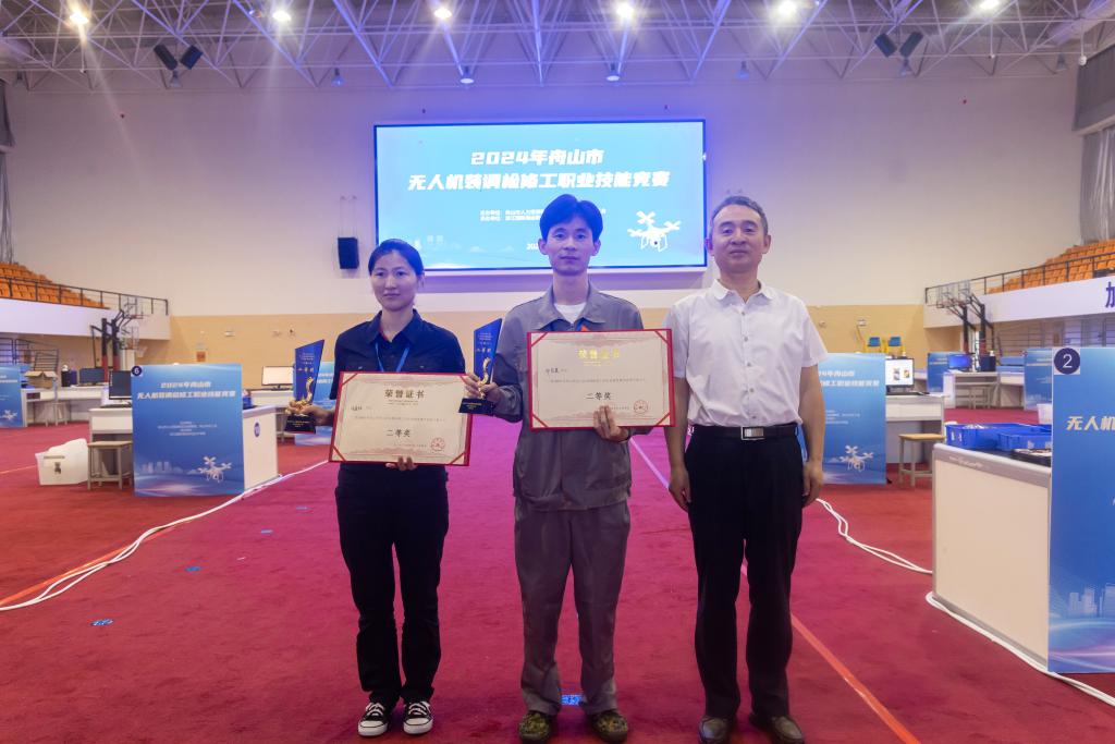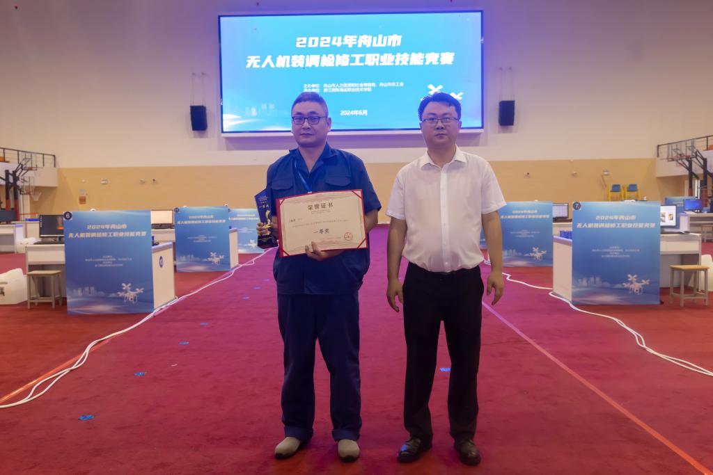我校海洋装备工程学院教师于朋涛、施鑫煜分别获得一等奖(第1名)和二等奖(第3名)好成绩。两位老师作为大赛一、二等奖选手,将由市人力社保局授予“舟山工匠”荣誉称号,核发无人机装调检修工二级(技师)技能等级证书。