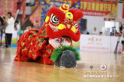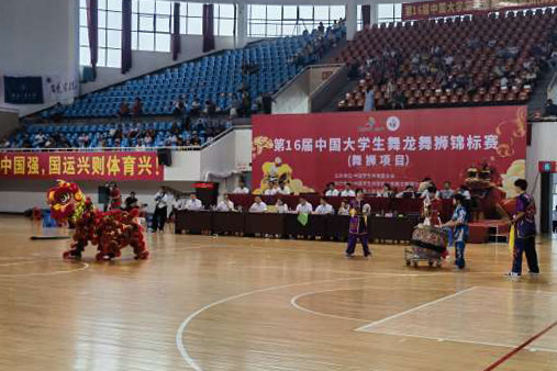 在铿锵有力的锣鼓声和伴乐声中,来自全国各高校的选手竞相登场比赛角逐,纷纷亮出看家绝活,高难的舞狮动作绝技赢得观众满堂喝彩和掌声阵阵。比赛过程中,我校选手不畏强手,沉着冷静,顽强拼搏,最终获得男子传统南狮第五名的好成绩。