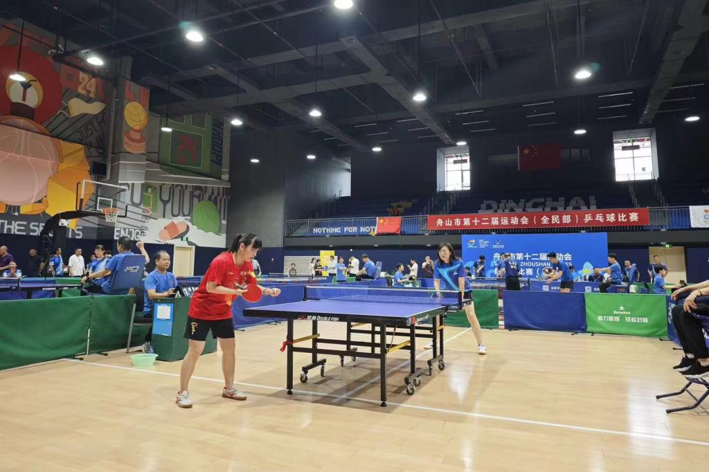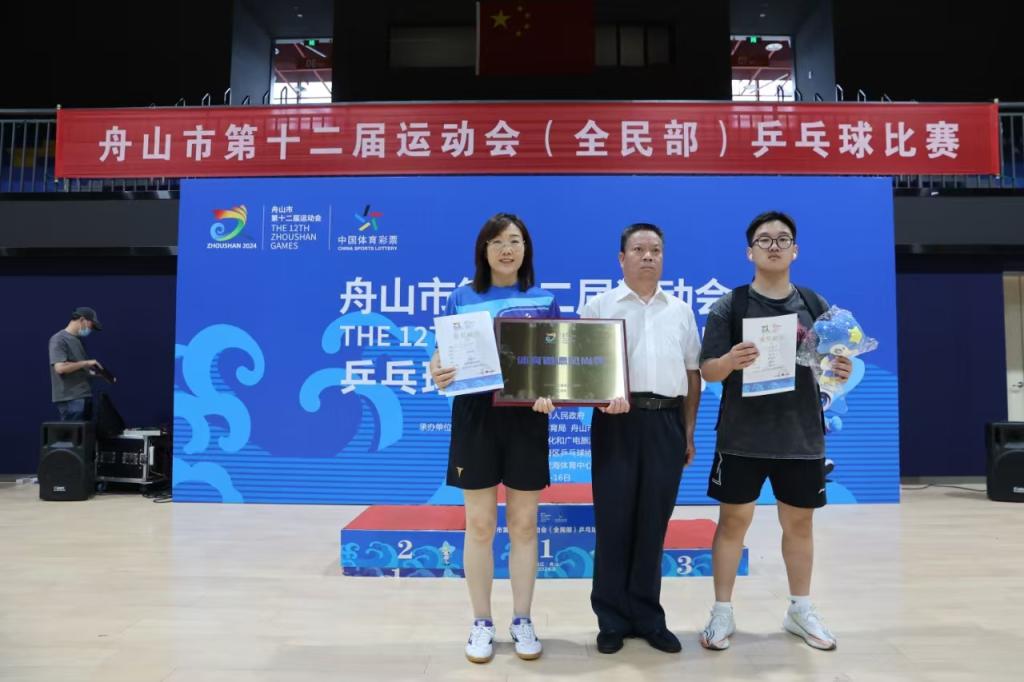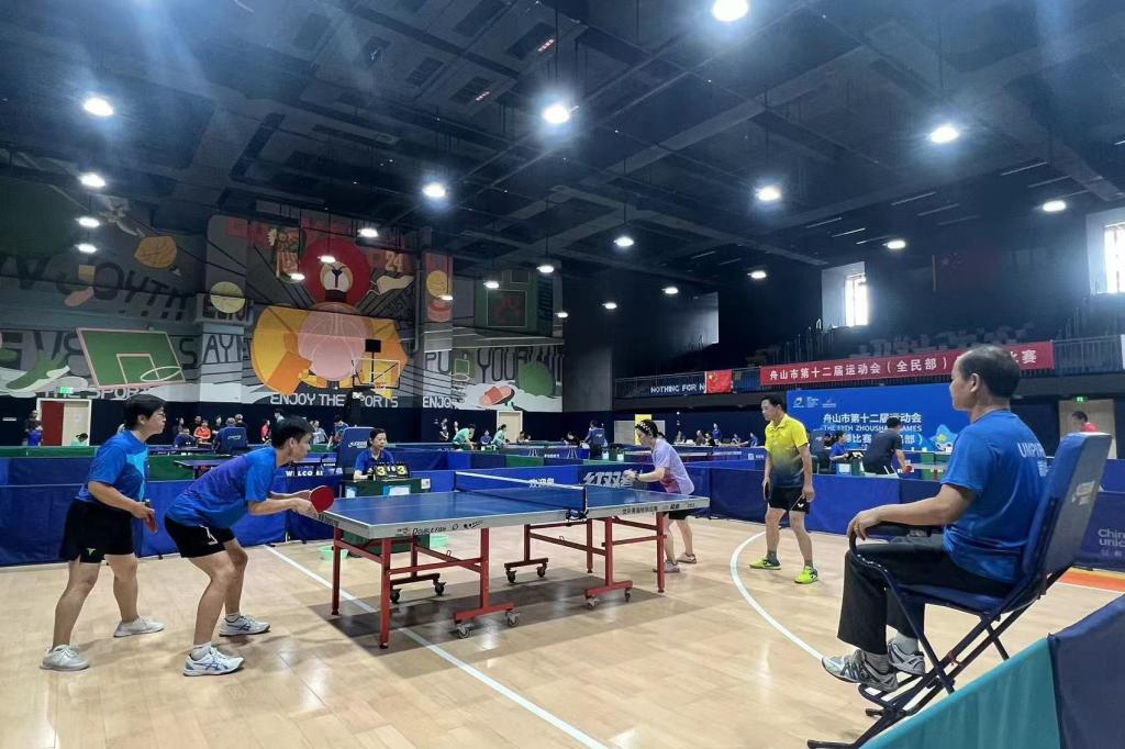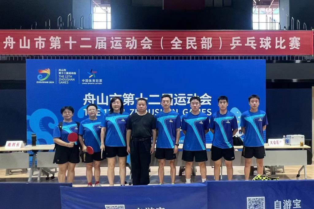 8月14日-16日,舟山市第十二届运动会乒乓球赛在定海区乐动力体育中心举行,来自舟山市各区县、管委会和四所在舟高校共10支代表队80余名运动员参加了比赛。我校选派了5名教职工以及3名学生参赛,由校党委委员、工会主席刘相担任领队,包海丽老师兼任教练。