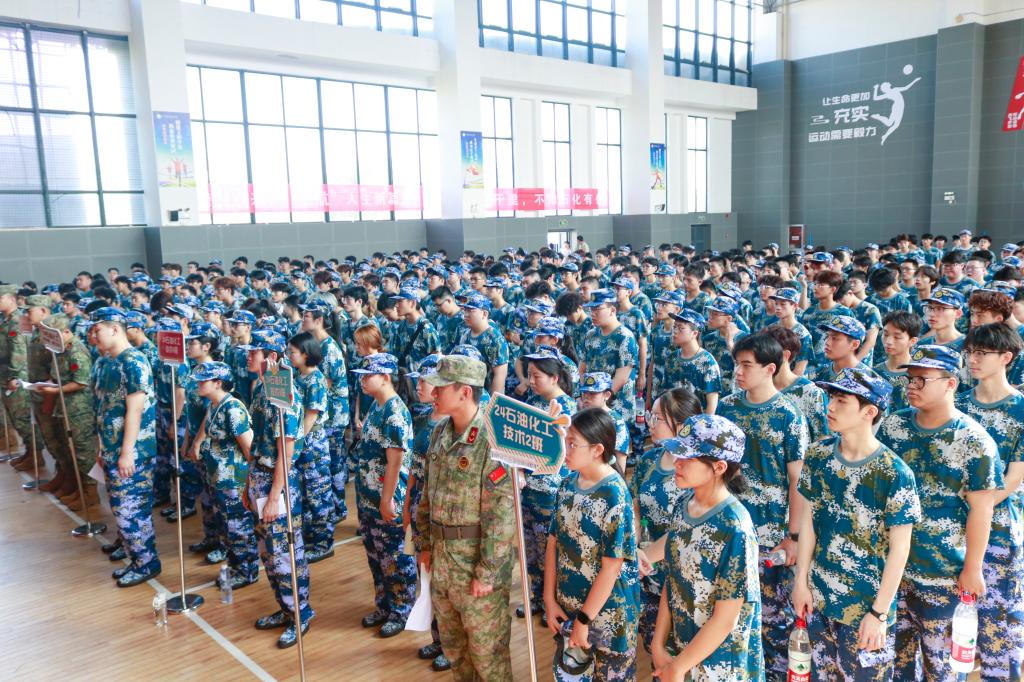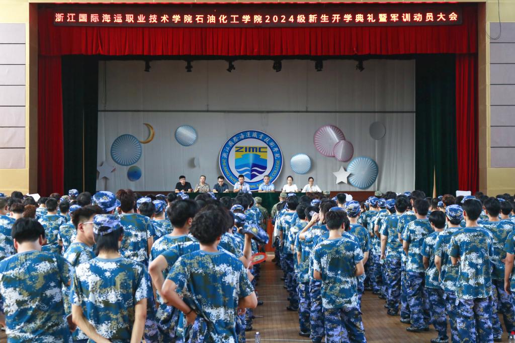 岱山校区在职教园区体育馆也同步举行了2024级新生开学典礼暨军训动员大会,石油化工学院全体班子成员、承训部队领导、全体参训师生参加。