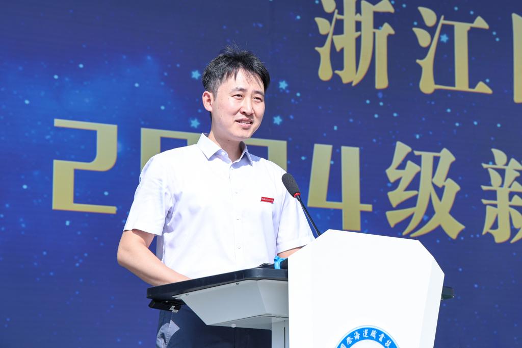 教师代表、浙江省高职院校教学能力比赛一等奖获得者、海洋旅游学院邹智深老师对2024级新生送上祝福,希望同学们在求学的道路上,不断追求卓越,始终秉持“德行四海”校训精神,做一名勤学善思、志存高远、勇于担当、敢作敢为、认真生活、包容谦逊的“海运人”。