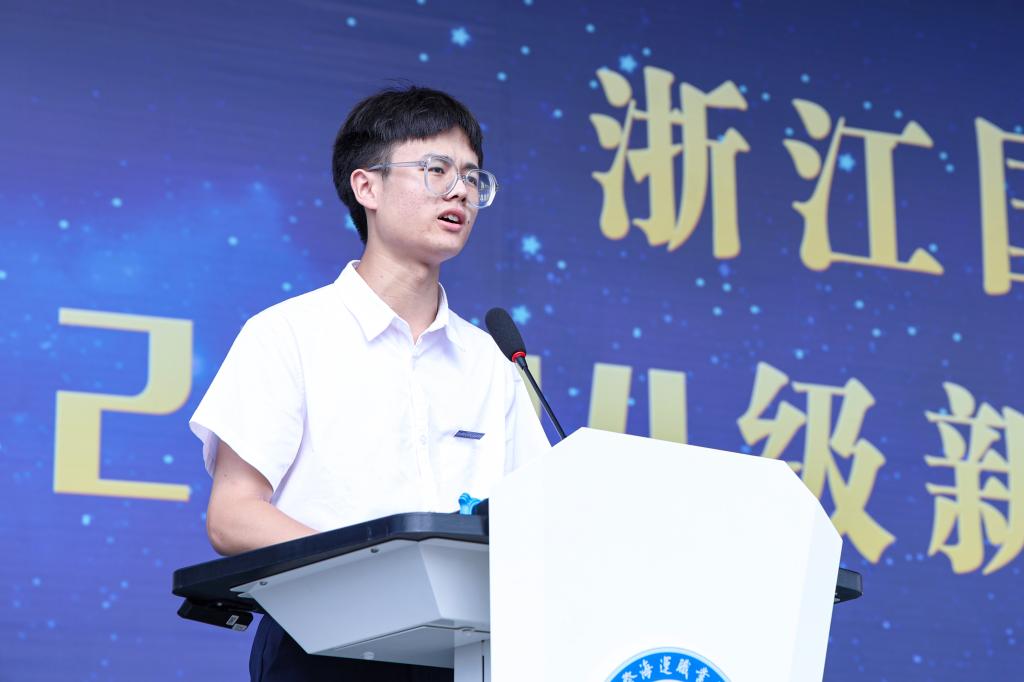 新生代表、航海工程学院2024级轮机工程技术1班金柯宇同学表示要珍惜大学时光,与同学们携手并进、共同努力,接过一代又一代海运学子的接力棒,书写精彩人生篇章。