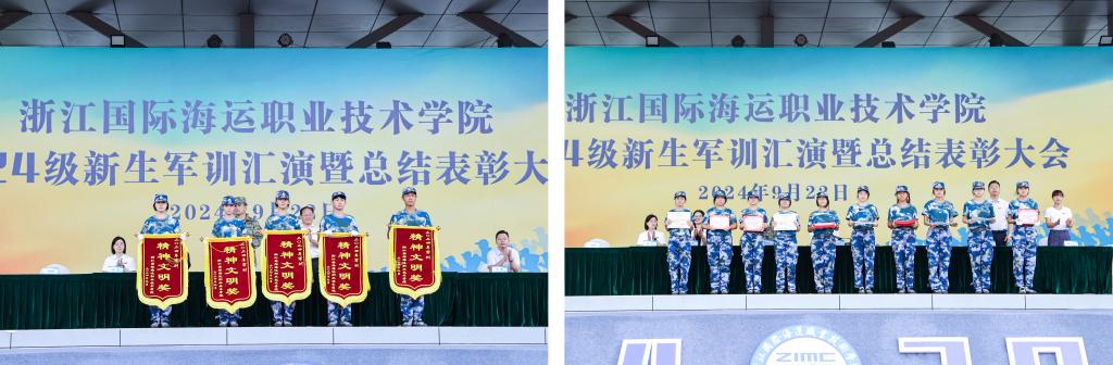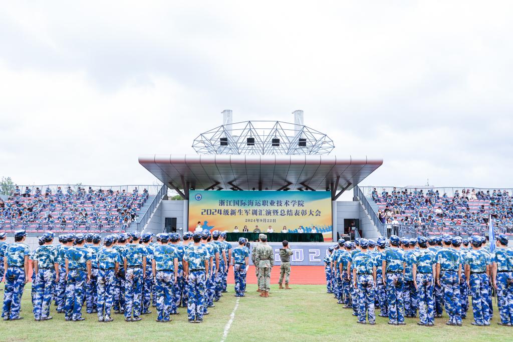 石油化工学院在岱山校区同步举行2024级新生军训汇演和总结表彰大会。