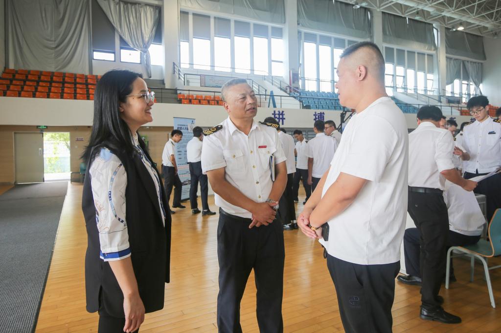 上午九点,企业宣讲会在教学楼召开。各用人单位分别对本单位的发展现状、前景、用人需求、福利待遇等进行宣讲,并与同学们深入沟通和交流。2025届航海类毕业生班主任、辅导员以及专任教师到现场指导学生就业。