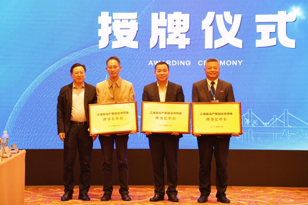 舟山市委教育工委副书记、市教育局党委书记、局长陈海波为江海联运产教融合共同体和舟山国际海事服务产教联合体授牌。学校作为牵头单位之一,政校行企联合促成人才培养、创新创业、产业经济高质量发展。成立行业产教融合共同体和市域产教融合联合体标志着深化现代职业教育体系建设改革“一体两翼”的开展与落实。