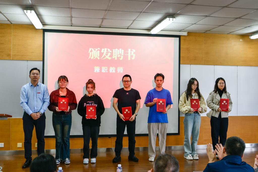 虞科鲁副局长和曹志斌副校长共同为“舟山市跨境电商产业学院”揭牌,聘请舟山同泽科技有限公司总经理汪新有先生为特聘教授,杨莉媛、陈颖、张玉倩、侯蒙洋、黄启立、周珏男等六位为兼职教师,并颁发聘书。