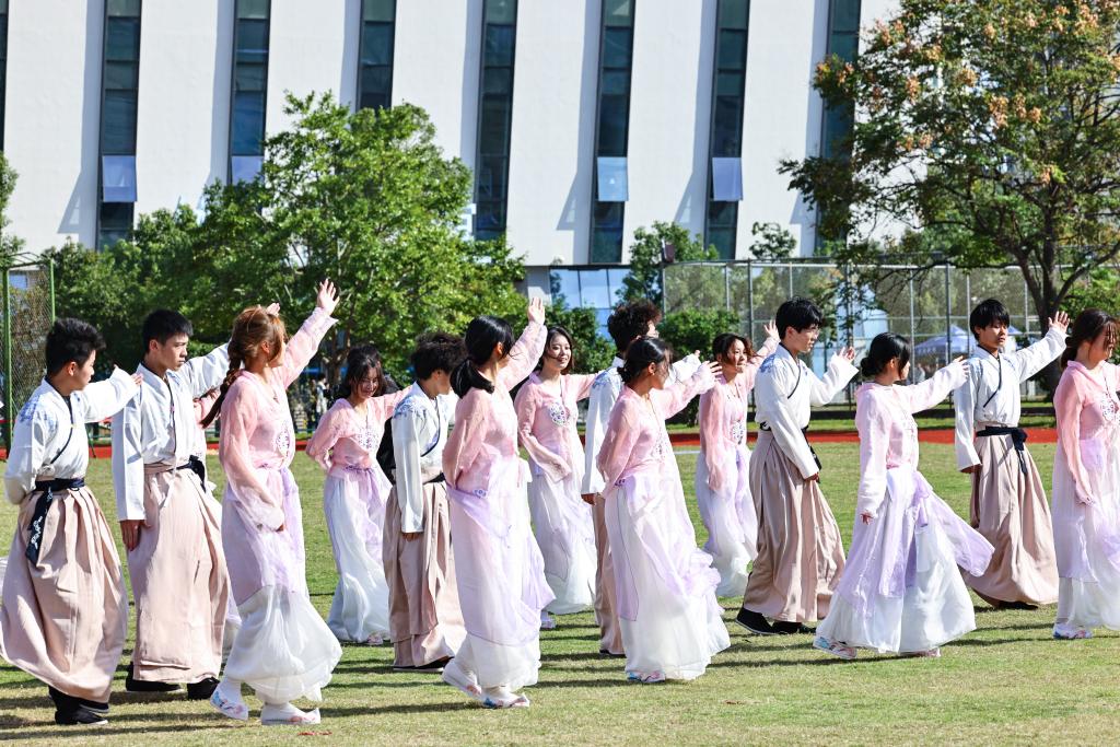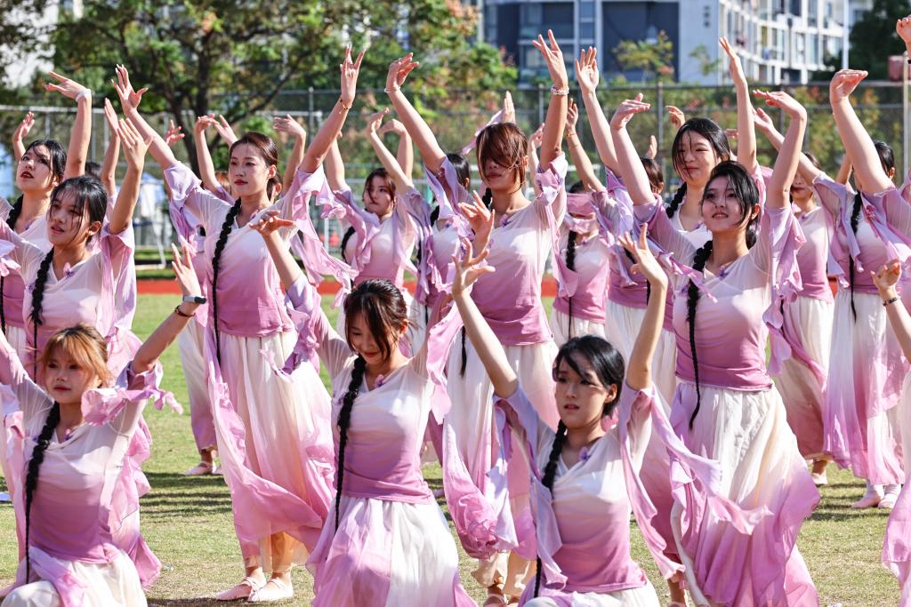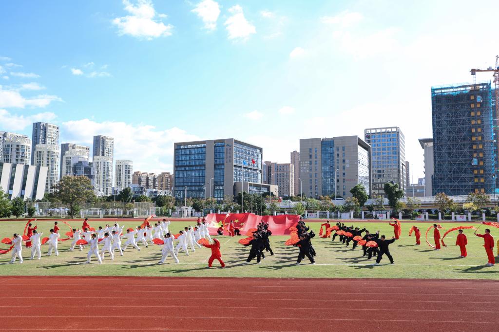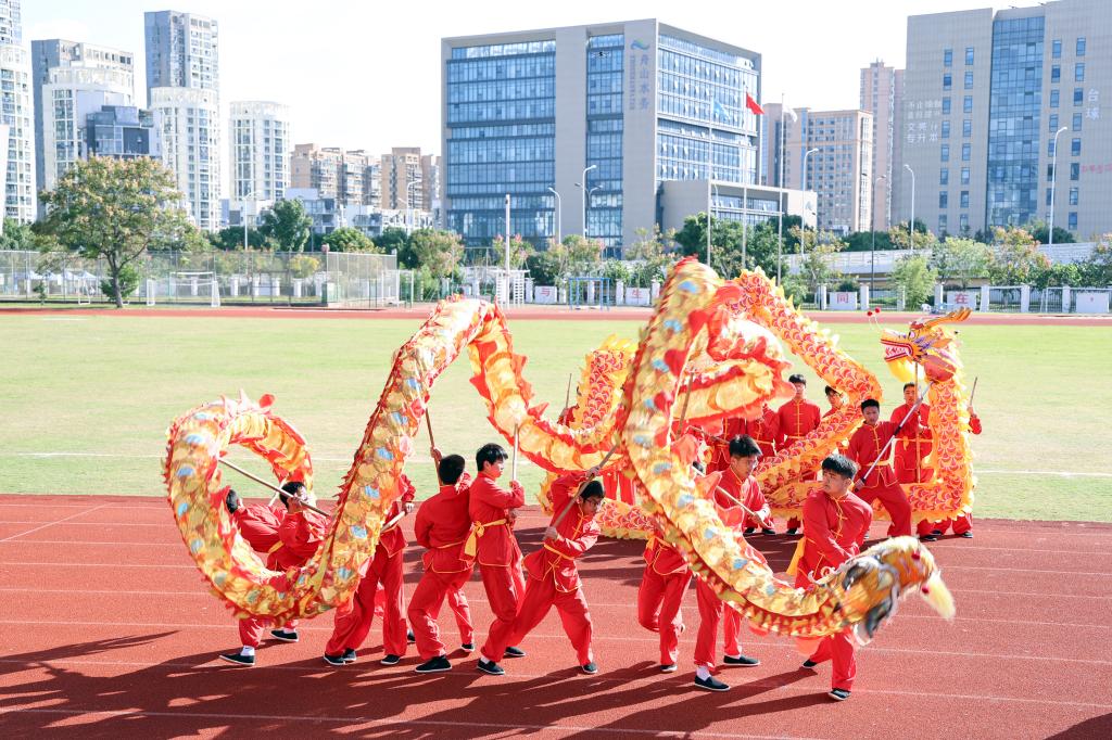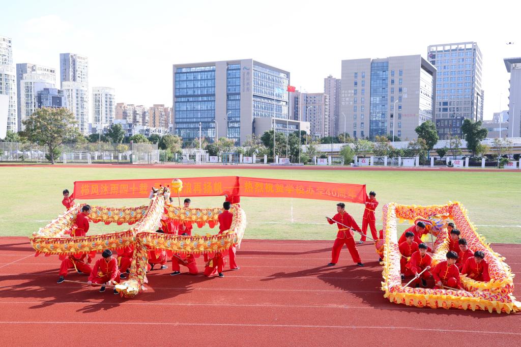 在动感活力的开幕式表演环节,校领导和师生们欣赏了舞龙、扇舞、红楼国风秀、齐舞、啦啦操等集体表演。精彩的演出充分展示了海运学子青春激昂的精神风貌,赢得了观众阵阵欢呼,现场气氛热烈。