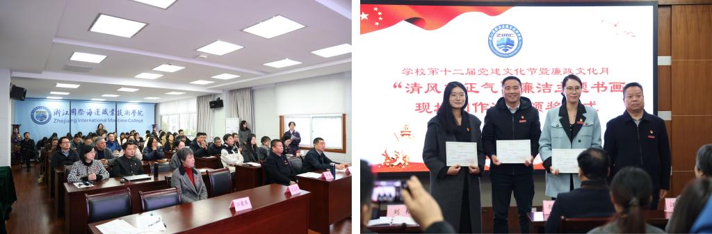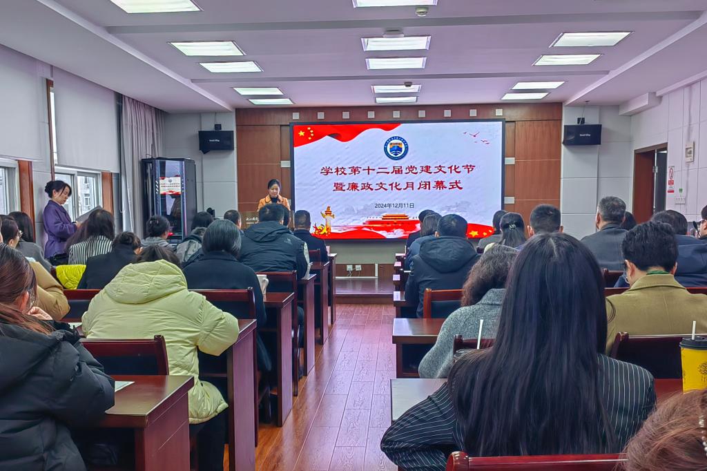 12月11日下午,学校举行廉洁教育微课大赛、第十二届党建文化节暨廉政文化月闭幕式,校领导、各党总支(直属党支部)书记和纪检委员、师生代表等共70余人参加活动。