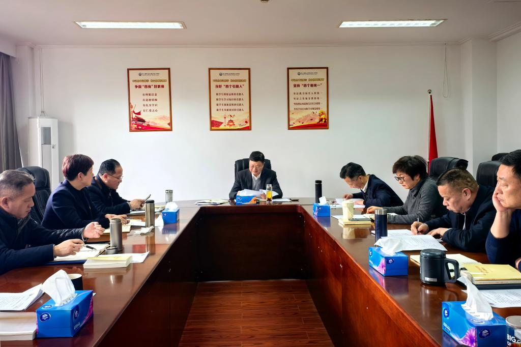 1月23日,校党委理论学习中心组在行政楼309会议室举行2025年第1次专题集中学习会。会议主题是深入学习贯彻习近平新时代中国特色社会主义思想和党的二十届三中全会精神,巩固深化党纪学习教育成果,坚决做到衷心拥护“两个确立”,忠诚践行“两个维护”,坚持党的全面领导,全力推动学校事业高质量发展。党委书记苏为泽主持会议并讲话。