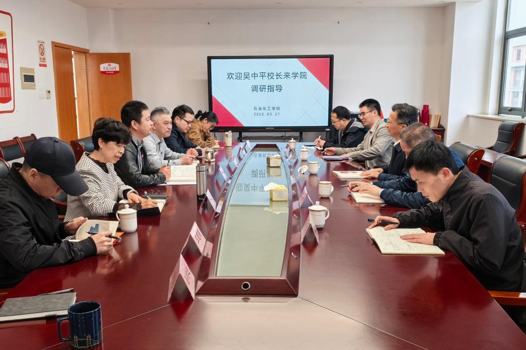 3月27日,校党委副书记、校长吴中平,党委委员、副校长曹志斌带领办公室、后勤产业处等相关部门人员到石油化工学院调研指导工作,学院党政班子参加调研。