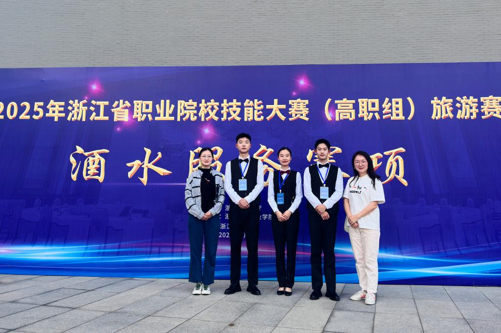 3月24日-26日,海洋旅游学院师生团队赴浙江旅游职业学院参加2025年浙江省职业院校技能大赛(高职组)“酒水服务”赛项,与全省29支队伍同台竞技,最终以总分第七名的成绩荣获大赛铜奖。