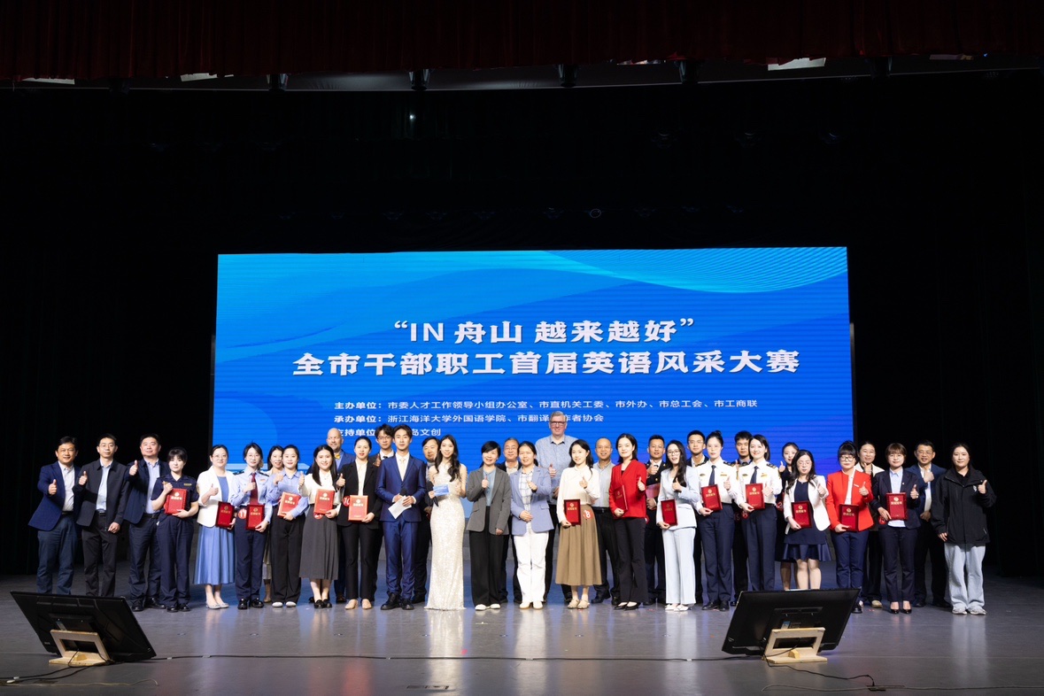 4月29日,“IN舟山,越来越好”全市干部职工首届英语风采大赛在浙江海洋大学举行。来自全市机关事业单位及绿色石化、船舶海工、现代航空、海事服务等行业领域的21名选手展开激烈角逐,最终我校国际教育学院教师邵瑶以总分第一荣获大赛特等奖。