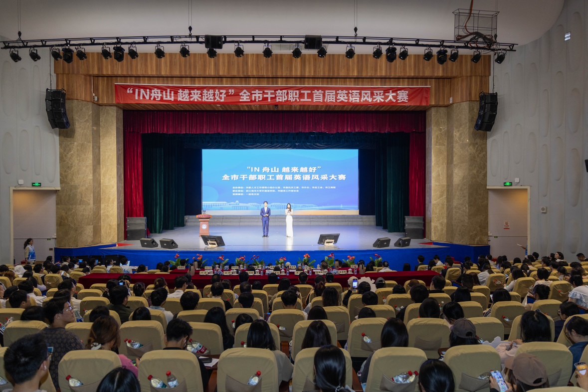 本次大赛由市委人才工作领导小组办公室、市直机关工委、市外办、市总工会、市工商联联合主办,浙江海洋大学外国语学院、市翻译工作者协会承办,旨在加强外语人才队伍建设,提升国际传播能力,助力舟山打造高能级开放强市。自3月启动以来,吸引了近百名机关事业单位及重点产业领域优秀人才参与。经过初赛视频选拔,21名晋级选手通过“主题演讲+PPT展示”形式展开角逐,重点考察英语表达、内容创新及舞台表现力。