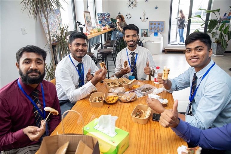 在为期一个月的培训中,学员们系统修习了船舶操纵、轮机管理等专业核心课程,并通过实操训练与虚拟仿真演练强化技能掌握。为促进中孟文化融合,培训同步开设基础中文课程,学员们展现出浓厚的学习热情与钻研精神。期间,学员们走进校企合作单位——普陀万邦船舶重工(舟山)有限公司,沉浸式体验舟山海洋文化:尝试渔民画创作、品尝海鲜小吃,感受非遗文化魅力;参观绿色修船车间,深入了解中国船舶工业的环保技术与创新成果。