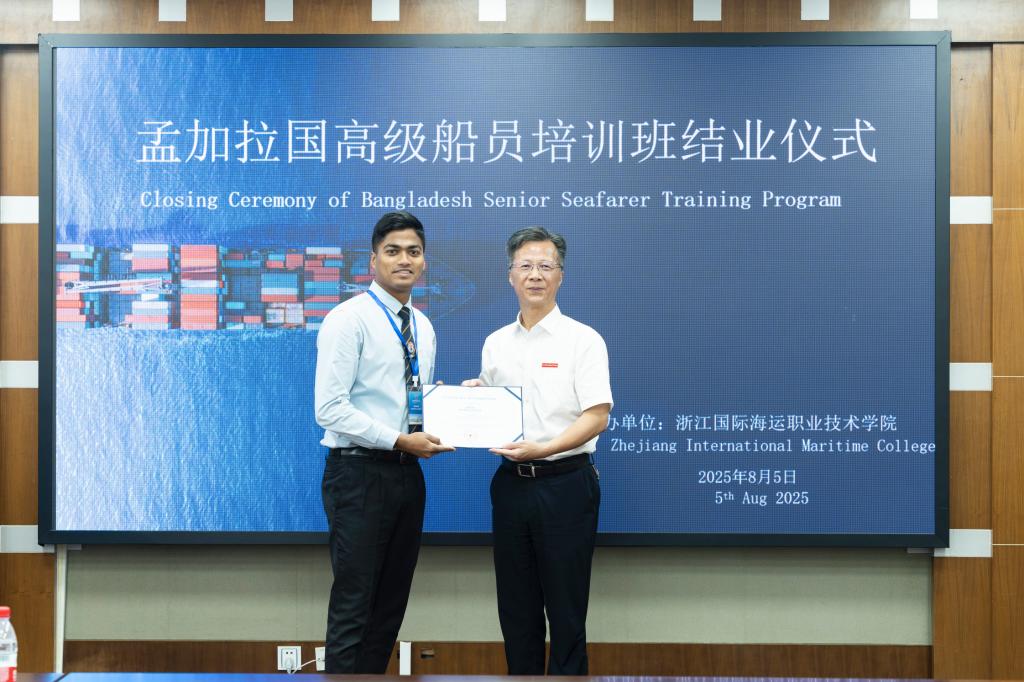 结业式上,孟加拉国海洋海事学院校长M. M. Jahirul Islam对本次合作给予高度评价,他表示,本次培训是中孟友谊与教育协作的生动实践,期待未来与我校进一步深化合作,共同推动航海人才培养事业发展。我校党委副书记、校长吴中平为学员们颁发结业证书,并勉励他们以专业能力擦亮“孟加拉国国际海员”的国际品牌。