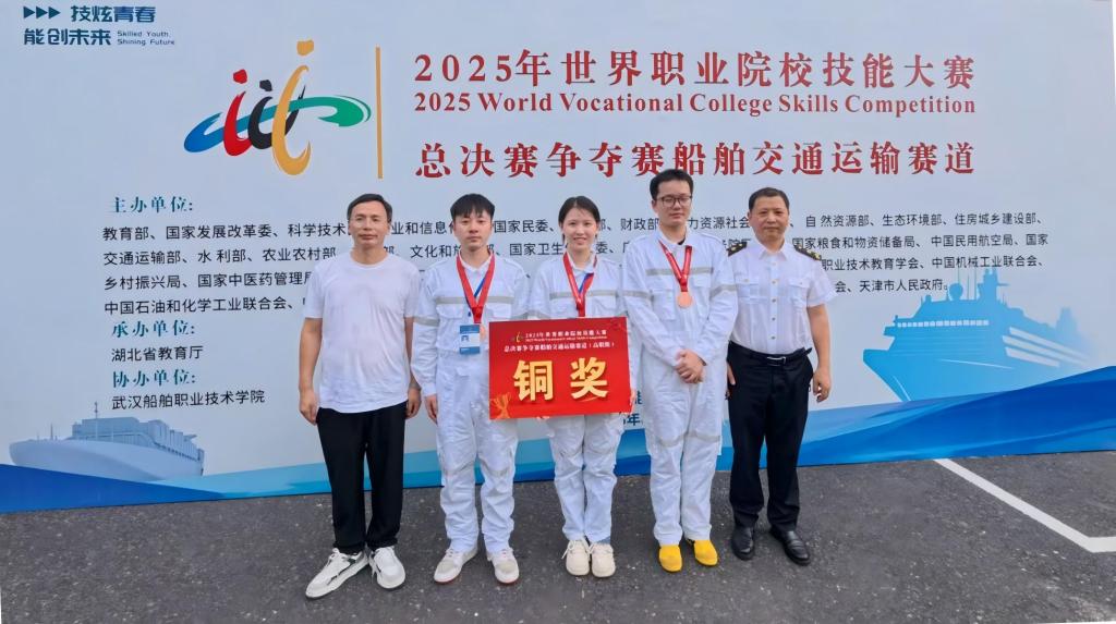 2025年世界职业院校技能大赛船舶交通运输赛道争夺赛(高职组)于8月22日至25日在武汉船舶职业技术学院精彩开赛。来自全国各高职院校的64支参赛队、238 名选手齐聚一堂,围绕船舶建造、船舶航行等船舶交通运输领域核心技能展开激烈角逐,充分展现职业院校学子的专业素养与技能风采。我校派出的 2 支参赛队伍凭借扎实的功底与稳定的发挥脱颖而出,最终斩获一银一铜的优异成绩,为学校赢得荣誉。