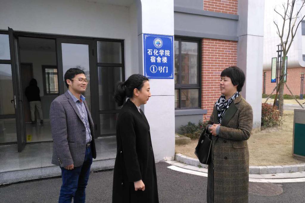 江爱芬书记一行在石油化工学院负责人陪同下,先后来到学校已经竣工的实验实训基地、教学楼、学生会办公室(社团活动室),现场察看并对有关工作给予指导。期间,还特地看望了在岱山校区工作的青年教师,了解他们的生活和工作情况,听取意见和建议。