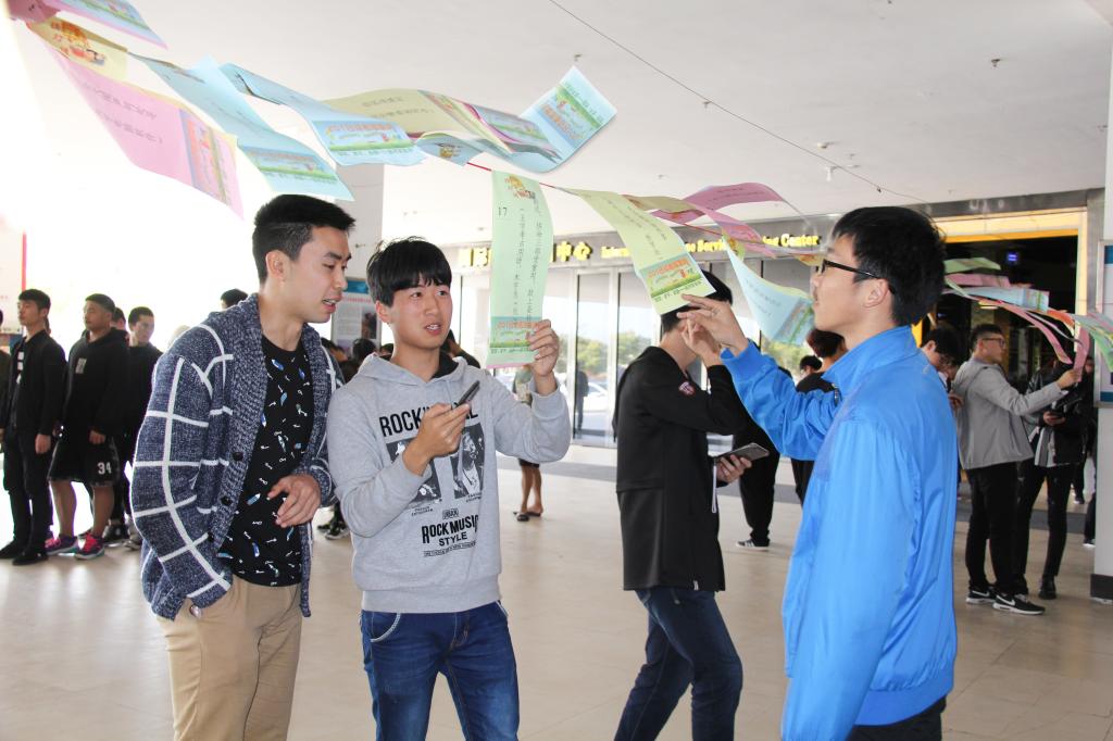 开幕式后,本届读者服务月开启第一项活动“学海揽胜—猜谜活动”,现场人头攒动,师生们或苦思冥想,或轻声品读,或悄悄讨论,乐在其中。