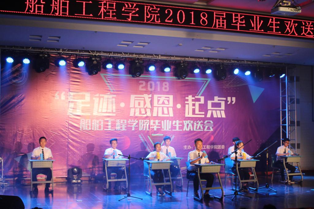 为欢送船舶工程学院2018届毕业生,5月18日晚,船舶工程学院团委于图书馆四楼报告厅举办了以“足迹·感恩·起点”为主题的毕业生欢送晚会。