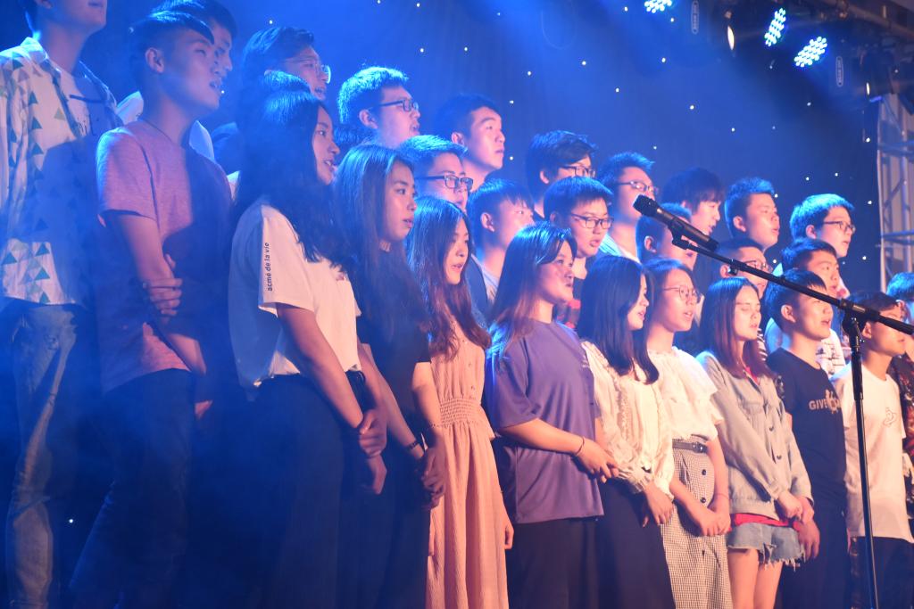2015级船舶工程技术(中乌合作)班全体毕业生带来大合唱《最美的期待》,对未来致以最美好的期待,2016级的同学们为每位毕业生送上鲜花,将晚会氛围推向高潮。