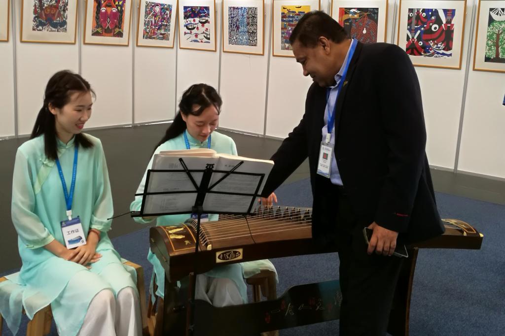 为保证热情、周到、高效地完成此次志愿服务工作,在大会服务动员后,5月30日、6月2日、6月3日,学校对40名志愿者开展了急救培训和礼仪培训。团学会志愿者负责威斯汀主会场的引导服务,会展区域的咨询引导、秩序维护服务;礼仪志愿者负责接待嘉宾和礼仪引导。他们活跃在会场内外,耐心礼貌地为国内外嘉宾提供咨询引导服务,每个志愿者都有自己的固定工作岗位,威斯汀主会场的签到区、楼梯和电梯口,保利大剧院以及会展区域等都留下了志愿者们青春的身影。在活动开幕式上,海洋旅游学院茶艺社选派的6位同学还配以古筝表演展示了茶艺、香道,引得来自世界各地的友人纷纷驻足欣赏留影。