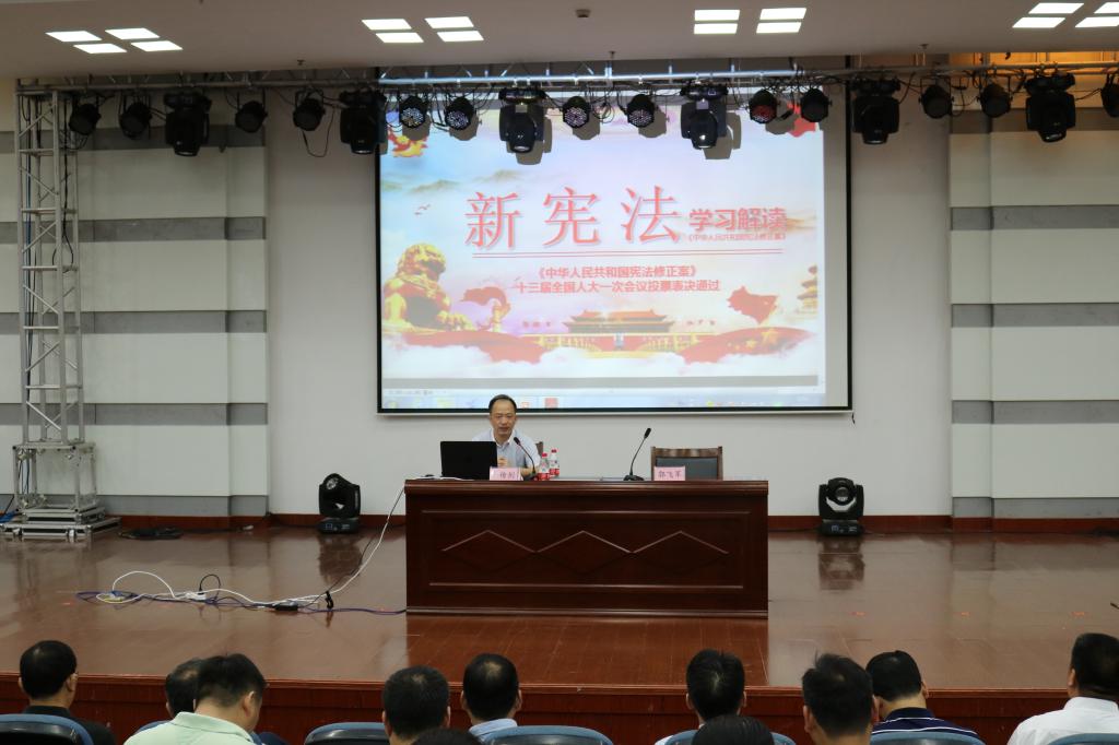 7月9日上午,根据学校党委的统一部署,学校邀请浙江海洋大学经济与管理学院党委书记易传剑博士为全校教职工作题为《学习解读中华人民共和国宪法修正案》的专题培训。他从宪法修正案概述、宪法序言部分修改的内容、宪法条款部分修改的内容、国家监察体制改革、宪法修改的重大意义五个维度作了精彩讲述。讲座内涵丰富,针对性和指导强,有利于教职工更加深刻认识《宪法》,牢固树立法治意识。