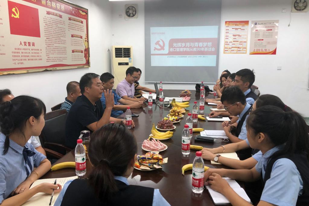 9月10日晚,港口管理学院召开以“光辉岁月与青春梦想”为主题的教龄30周年以上老教师茶话会。学院党政班子、老教师与学“习”小组成员齐聚会议室,其乐融融,共同欢庆第34个教师节。