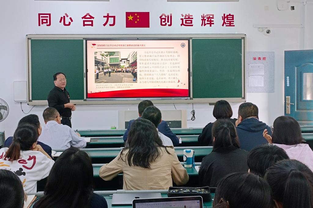 孔志光副书记从“深刻领悟习近平总书记考察浙江重要讲话的重要意义”、“深入学习贯彻习近平总书记关于教育的重要论述”、“始终坚持立德树人根本任务,努力培养时代新人”、“持续推进师资人才队伍建设,不断提高人才培养质量”四个方面,深入浅出地分析了主题教育的重要性和必要性。