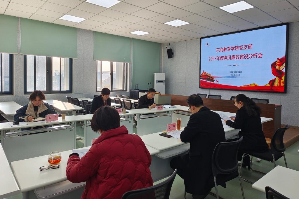1月4日下午,东海教育学院党支部在学院303教室召开了2023年度支部党风廉政建设分析会。学院班子成员参加会议,校党委委员、纪委书记张谷燕和校纪委办主任胡明扬应邀参加会议。会议由学院党支部副书记王海玲主持。