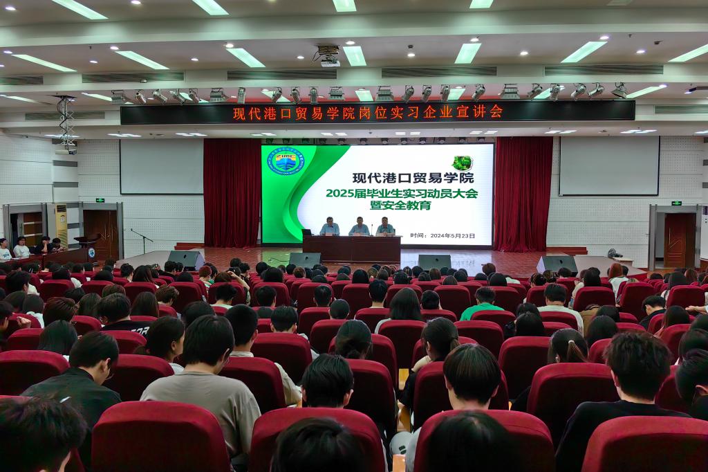 5月23日,现代港口贸易学院在图书馆报告厅举行了2025届实习生动员大会暨安全教育。此次活动旨在为即将参加岗位实习的学生们提供全面的指导和动员,同时搭建起学生与企业之间的沟通桥梁。