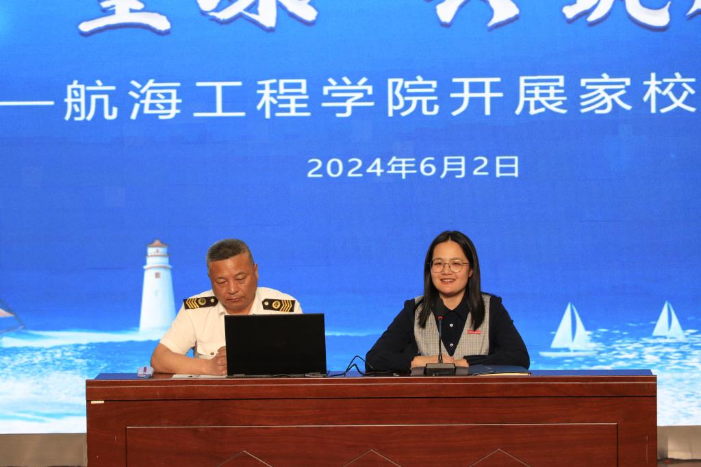 为促进学校教育与家庭教育的协调发展,增进家长与学院之间的沟通交流,形成良好的家校合力,6月2日,航海工程学院在图书馆四楼报告厅召开了“同上一堂课,共筑航海梦”家校共育讲座,并在公众号同步直播。航海工程学院全体行政班子、2025届考证班学生以及家长、相关班主任、辅导员参加此次活动,会议由学院党总支书记徐盈主持。