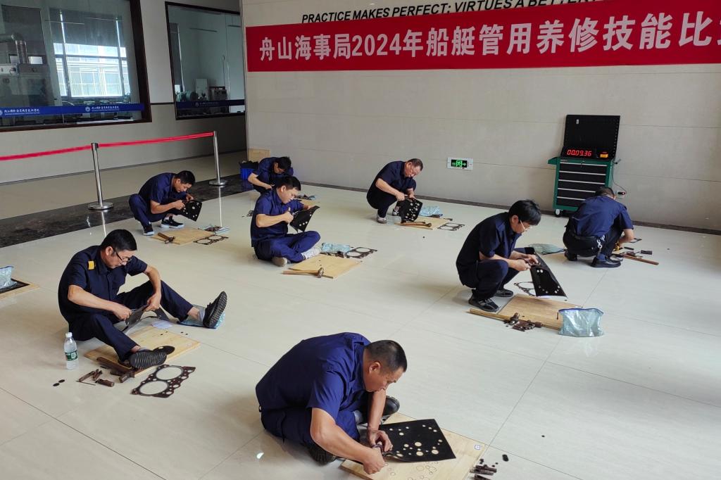 本次比武共设置柴油机密封垫制作和高压油泵拆装检修2个实操项目,来自舟山海事局辖区8个海巡艇队伍的参赛选手们同台竞技,展现了良好的精神面貌和业务能力。